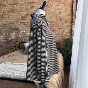 Who What Wear Striped Button Down Blouse Flutter Ruffle Sleeve Top