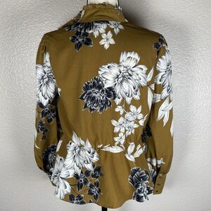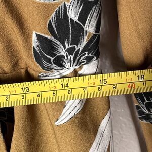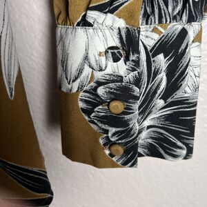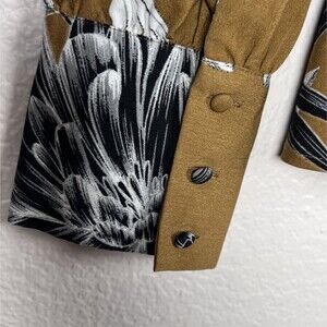 Who What Wear Sz M Long Sleeve Floral Peplum Blouse Asymmetrical Buttons Mustard Yellow Black White