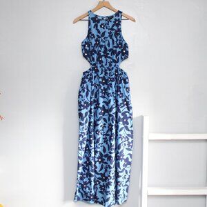 Who What Wear Target Blue Seaside Floral Maxi Dress Side Cut-Outs Size Medium