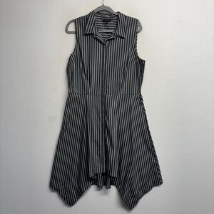 Who What Wear Target Striped Collared Sleeveless Asymmetrical Hem Dress L Gray