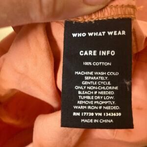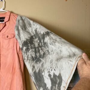 Who What Wear Mix Media Button Up Dress Size Small.. Truly unique. Bodice of dress is also very slightly tie dyed. Oversized and tie dye blue jean material arm sleeve with pointed ends. They are grey and white tie dye and dress body is an orange salmon color. In great condition. Very Artsy. Note! Picture makes it looked stained, but its not, its just the lighting.