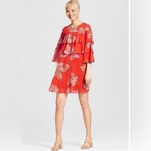 Who What Wear Tiered Ruffle Floral Mini summer Dress Red NWOT