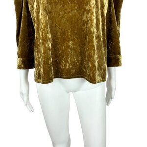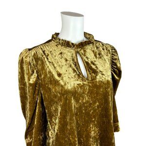 Who What Wear Top Women's Medium Crushed Velvet Mustard Yellow Puff Sleeves Keyh