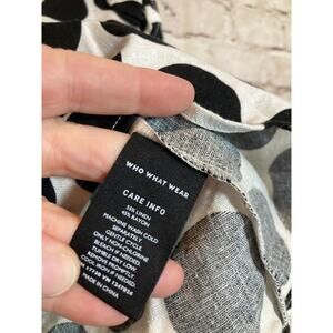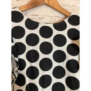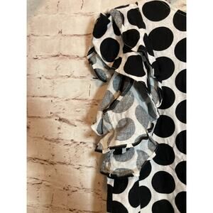 Who What Wear Top Womens Medium Linen Black White Polka Dot Button Back Ruffles