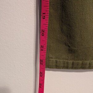 Excellent used condition, no flaws. Note these have a purposefully shorter inseam. First photo is for fit reference only, these are a much darker, military green color.