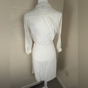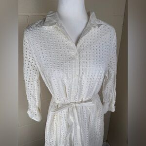Who What Wear White A-Line V-Neck Dress Eyelet Size Large Pockets Belted Chic