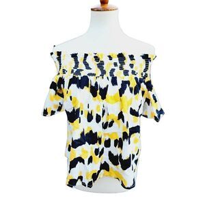 Who What Wear Women Blouse Off Shoulder Colorful Short Sleeve Puff Smocked M New