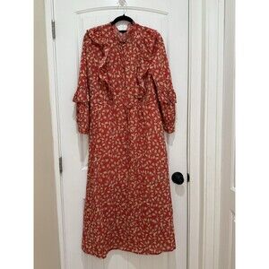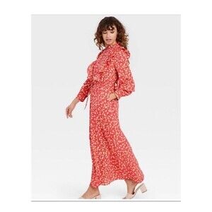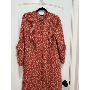 Who What Wear Women Dress Extra Large Red Floral Cotton Blend Ruffle Modest Long