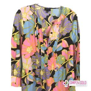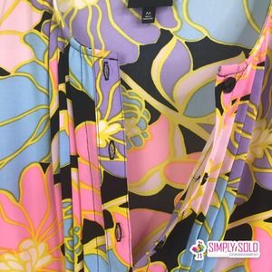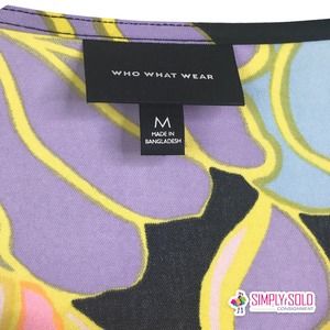 Who What Wear Women's Black Pink Floral Dress Mini Puff Sleeve 3/4 Bohemian Sz M