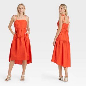 Who What Wear Women's Dress Large Red Sleeveless Baby Doll High Low Sundress New