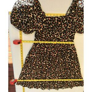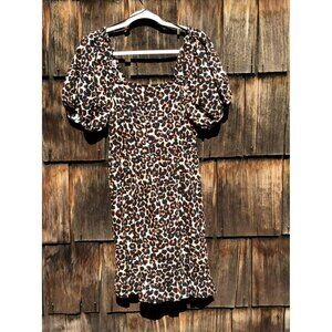 Who What Wear Womens Dress Small Baby Doll Leopard Print Linen Rayon Puff Sleeve