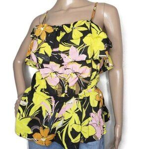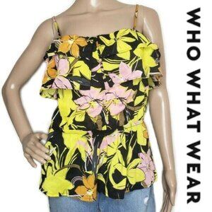 Who What Wear Womens Floral Ruffle layered detailed tank Top S Yellow & Black
