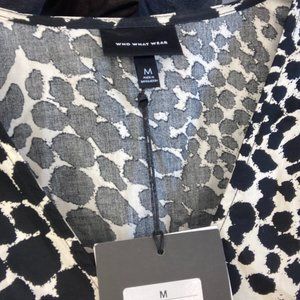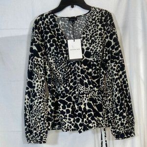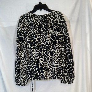 Who What Wear Womens' Leopard Print Long Sleeve Wrapped Peplum B/W Top NWT