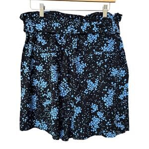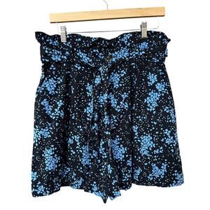 Who What Wear Women's Linen Black Floral Paper Bag Waist Shorts Size 14