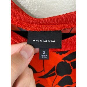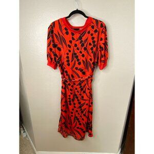 Who What Wear Womens Red Midi Dress Black Leaf Print Size S Belted Polyester