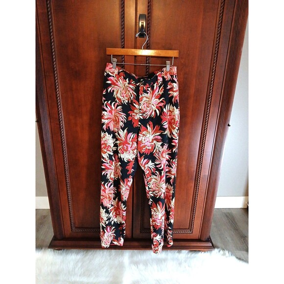 Who What Wear Women's Size 32" M Wide Leg Black Floral Pants Side & Back Pockets