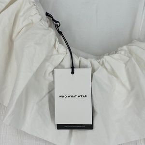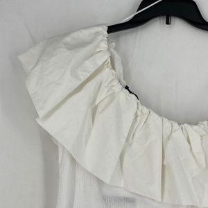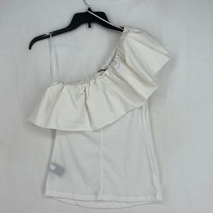 Who What Wear Womens XS Small One Shoulder Knit Top Woven Ruffle Bright White