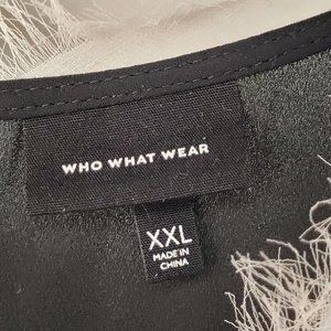 Who What Wear Chiffon Tank in black with rough edge white fringe trim. Non-stretch.