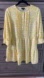 This dress features a vibrant yellow and white pattern with a relaxed fit and 3/4 sleeves. The pleated design and mandarin collar add a touch of elegance, making it perfect for a casual yet polished look.