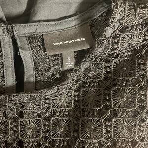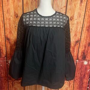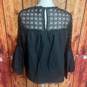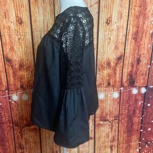 Who What Wear black lace blouse size Small puff cuffs sheer top 100% cotton