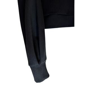 Super cute and comfy raglan sleeve sweatshirt with flair. Cute puffy sleeves, and tie front. In very good used condition 81% polyester, 14% rayon and a touch of spandex. Slightly cropped. 19 inches long and 20 inches pit to pit.