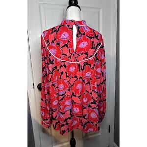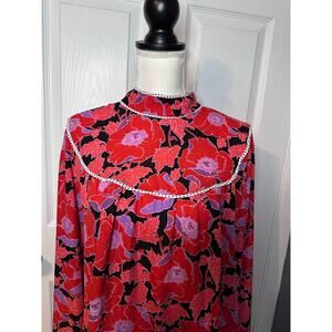 Who What Wear women's Shirt Floral Red Poppy Pattern Long Sleeves XXL