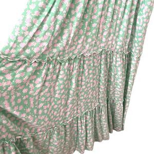 Who What Wear Green Floral Midi Puff Elbow Sleeve Dress in Size Large