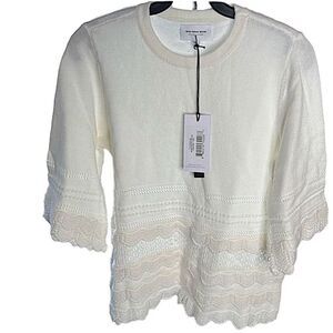 Who What Where Eyelet Knit Top Ivory NWT Small