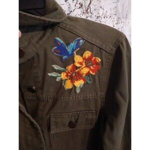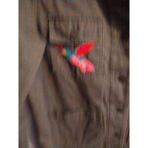 Who What Where Floral Bird Print Denim Button-up Jacket Sm Olive Boho Outdoor