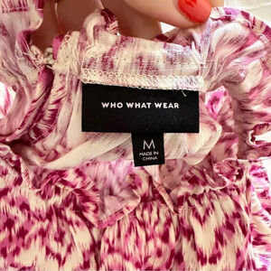Who What Wear Pink Printed Midi Length Sleeveless Mock Neck Dress
