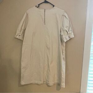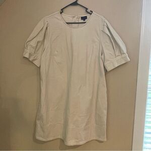 Chic and comfortable white denim-look dress by Who What Wear, size XXL. Made from a cotton-spandex blend for a structured yet flexible fit. Features short sleeves and a shift silhouette—perfect for casual outings or dressing up with accessories.