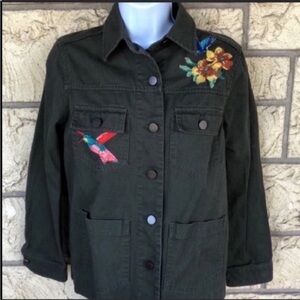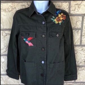 Who what wear Green Denim jacket embroidered floral bird Oversized Small