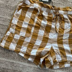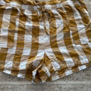 Who what wear Size 3X Yellow and white plaid Shorts front tie NWT