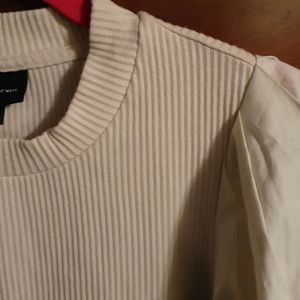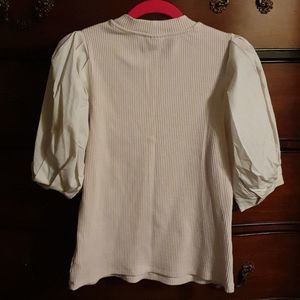 On trend, sleeves are everything! Puffed sleeve, ribbed knit top. Oatmeal in color, so cute! Size XS, never worn.