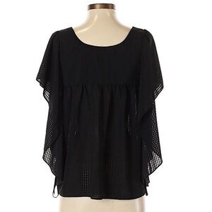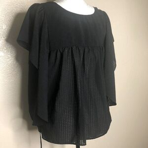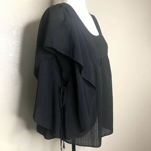 Who What Wear Short Sleeve Blouse Black Tie Sides Scoop Neckline