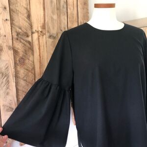 Who What Wear Womens Top Black 3/4 Bell Sleeve Blouse Size Large