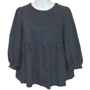 Who What Wear black and white polkadot print peplum baby doll top- size small