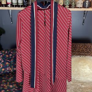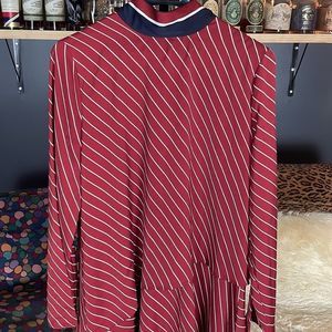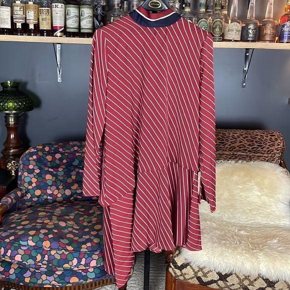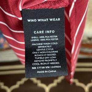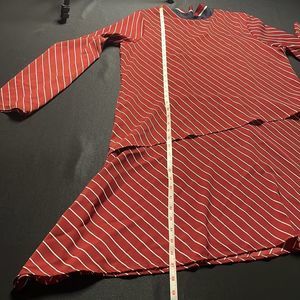 Who What Wear NWT merlot white navy striped asymmetrical hem long sleeve dress