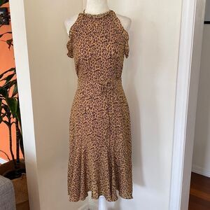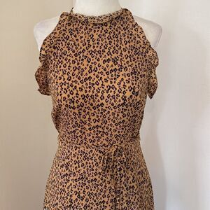 Who What Wear Animal Print Sleeveless Ruffle Midi Dress Size XS
