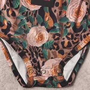 Whoa Pony Newborn Baby NWT Snap Bottom Bell Sleeve Leopard Rose One-Piece 0-3 M