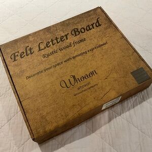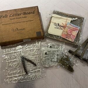 Whoaon Rustic Wood Frame Gray Felt Letter Board. Easel included, letters and bags. Cutter also included. NEW. Opened for pictures. Perfect for weddings, showers and parties. Sold out online.