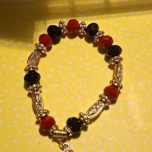 Wholesale Bracelet red Black Beads Religious Bracelet Stretch gold beads lot 10