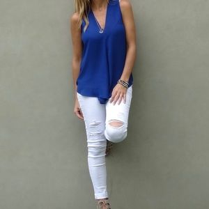 Loving this flirty effortless top 💕 Its a basic must have for your work to play wardrobe! Feminine & simple sleeveless v-neck top with a beautiful flowy fit. Its the perfect top to wear on it's own or layered under a jacket or blazer.