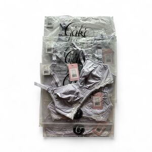 The product is a wholesale bulk of nursing maternity bras from the brand Cake Lingerie. These bras come in assorted sizes and colors as follow: 1 blue, 8 plum, 4 ginger, 6 honeycomb. The style is specifically designed for nursing mothers, with features tailored for ease of use during breastfeeding.