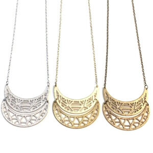 Wholesale Bulk Listing of 6 Tribal Boho Bohemian Bib Statement Long Necklaces in Gold tone, Silver tone & Brass.