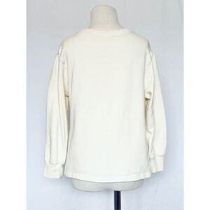 Whooli Chen x H&M. Sweatshirt in organic cotton fabric with a printed design and soft, brushed inside. Dropped, slightly puffed shoulders, long sleeves, and ribbing at neckline, cuffs, and hem. Darling addition to any girl’s wardrobe. Screenprint. Pullover styling. Size tag is missing but based on other items from this brand 5/6 seems accurate. Excellent preowned condition.