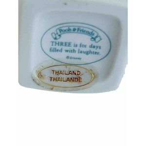 This plate set featuring Winnie the Pooh characters is a must-have for any Disney fan. The set includes a 6 1/2" child's plate made of porcelain, along with a retired Pooh figurine. The set has been previously owned, but is in great condition for its age. The plate set is perfect for collectors of Disneyana items and fans of contemporary housewares. The set was manufactured in Thailand and features the beloved Franchise of Disney. Don't miss out on this charming addition to your collection.