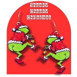 Whoville's Full Moon Cheeky Grinch Christmas Earrings Holiday Bling Sparkle NEW