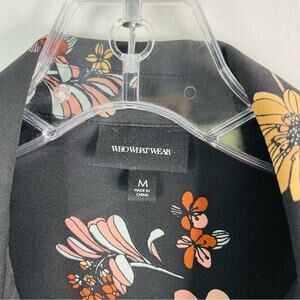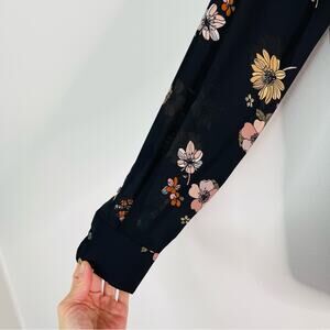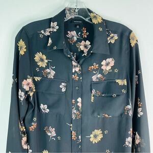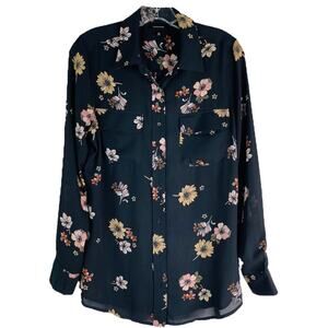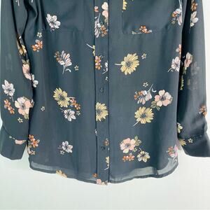 Whowhatwear black tan floral chiffon button front shirt top medium