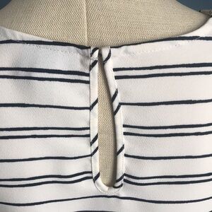 Whowhatwear, cream with black stripes, bell short sleeves, back closure, cropped top.
